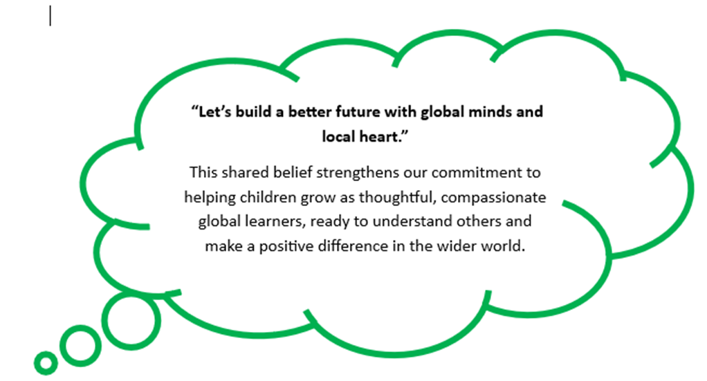 This belief shapes our approach to global education. We want children to recognise that their ideas and actions—however small—can make a positive difference. As they learn about other cultures, explore global issues, and build friendships beyond their own community, these early seeds of understanding begin to grow.